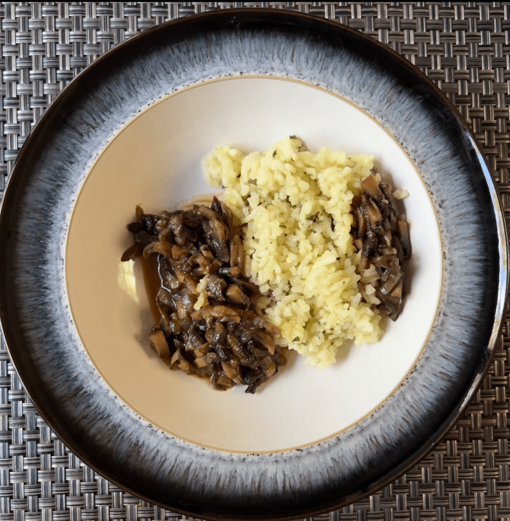 The mushroom paprikas with butter rice was a winner!
